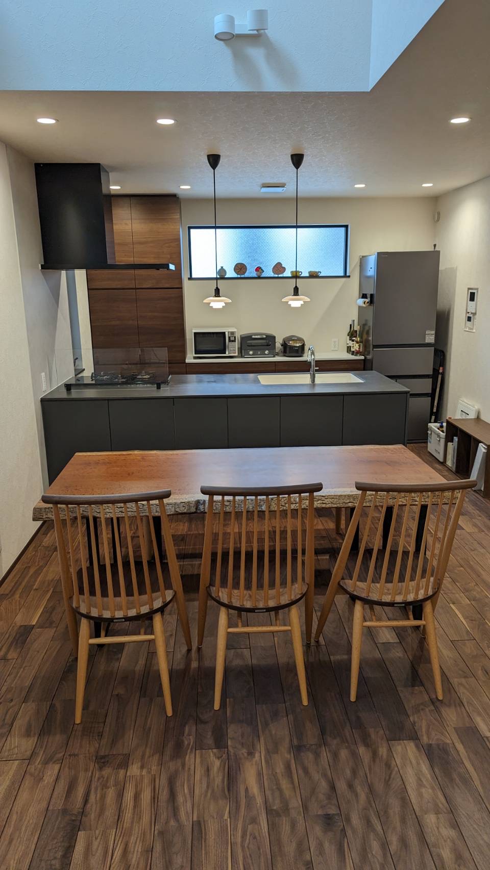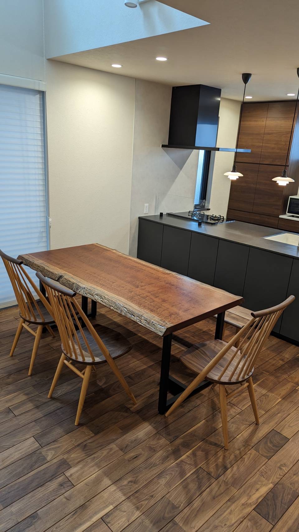 椅子を3脚並べるとちょうど収まるサイズ感で、K様ご家族はお誕生日席も使いながら5人で囲むスタイルを想定して選ばれました◎