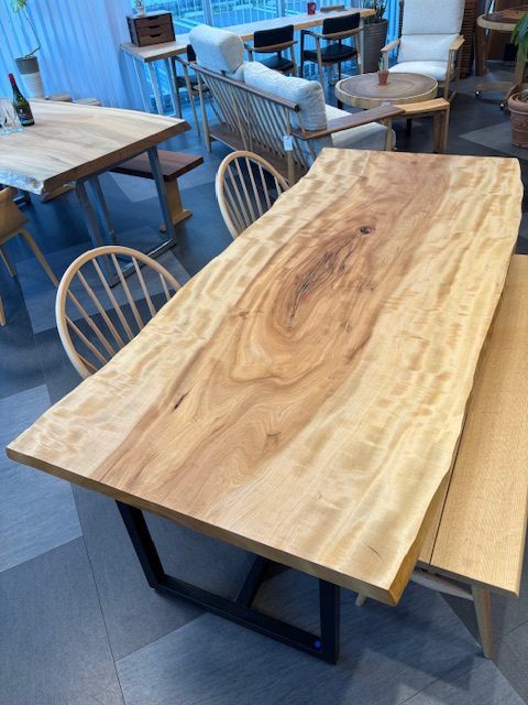 ほんのり桜色をしたやわらかな木肌が、空間にみずみずしい表情を添えます ▪ 天板のみの価格です(脚部、椅子、ベンチは含まれません) ▪ 売約済みとなっている場合がございますので、詳細はお問合せください。